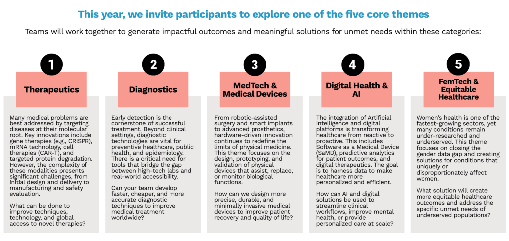 Our program is designed to bridge that gap. We provide the tools, the industry mentors, and the multidisciplinary teams needed to transform academic insights, whether yours or the world’s, into viable health solutions.